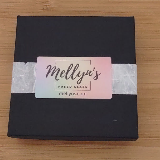 Caring for fused glass jewelry: To clean, use a soft cloth. Do not use harsh chemicals to clean. Should not be submerged in water, and should be removed when bathing or swimming. Apply perfumes and lotions before putting on jewelry. Use care when handling as can still break if hit or dropped on hard sur-face. It’s a good idea to remove before bed.
