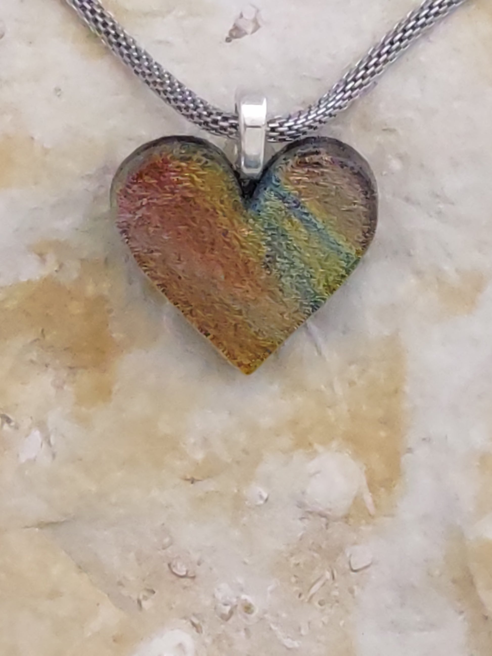 Multi-Color Dichroic Heart Shaped Pendant with Mesh Chain