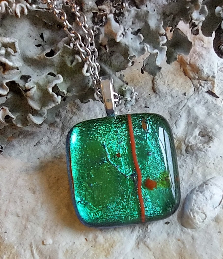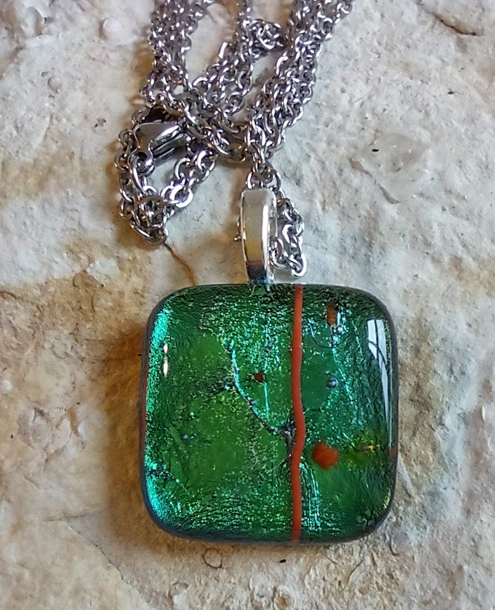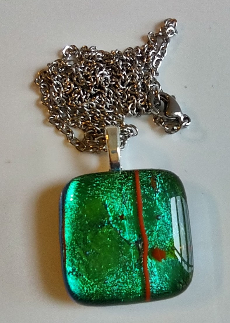 Green Dichroic Square Pendant with Chain