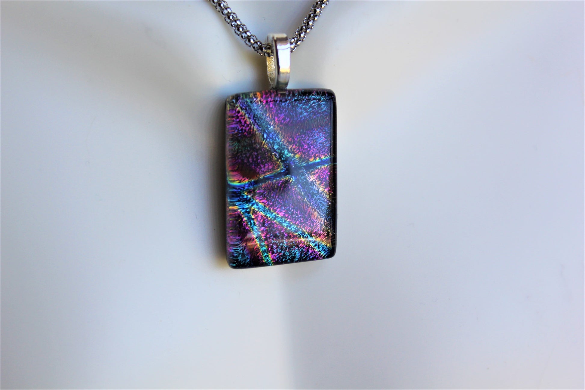 Dichroic Pendant, Fused Glass Dichroic Necklace, Teachers Gift, Fused Glass Pendant with Chain, Gift for